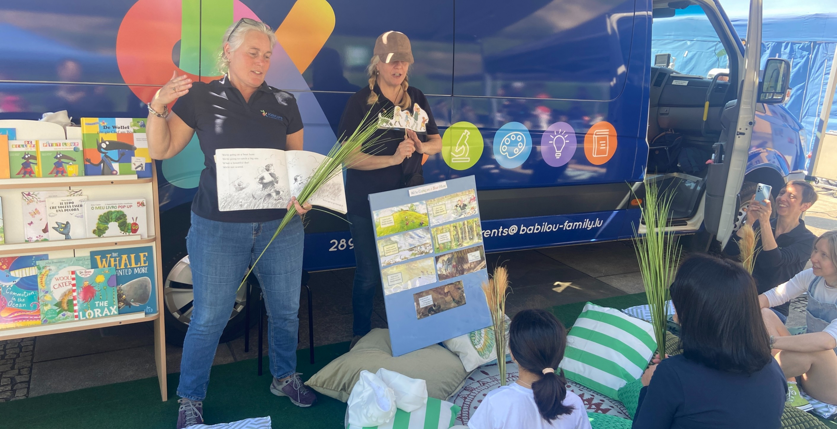 In our second workshop, following the wonderful performance of our teams , parents were able to take the time to read stories to their children in the language of their choice. A pleasure for them to find books in their native language, and especially to be able to share them with their children.