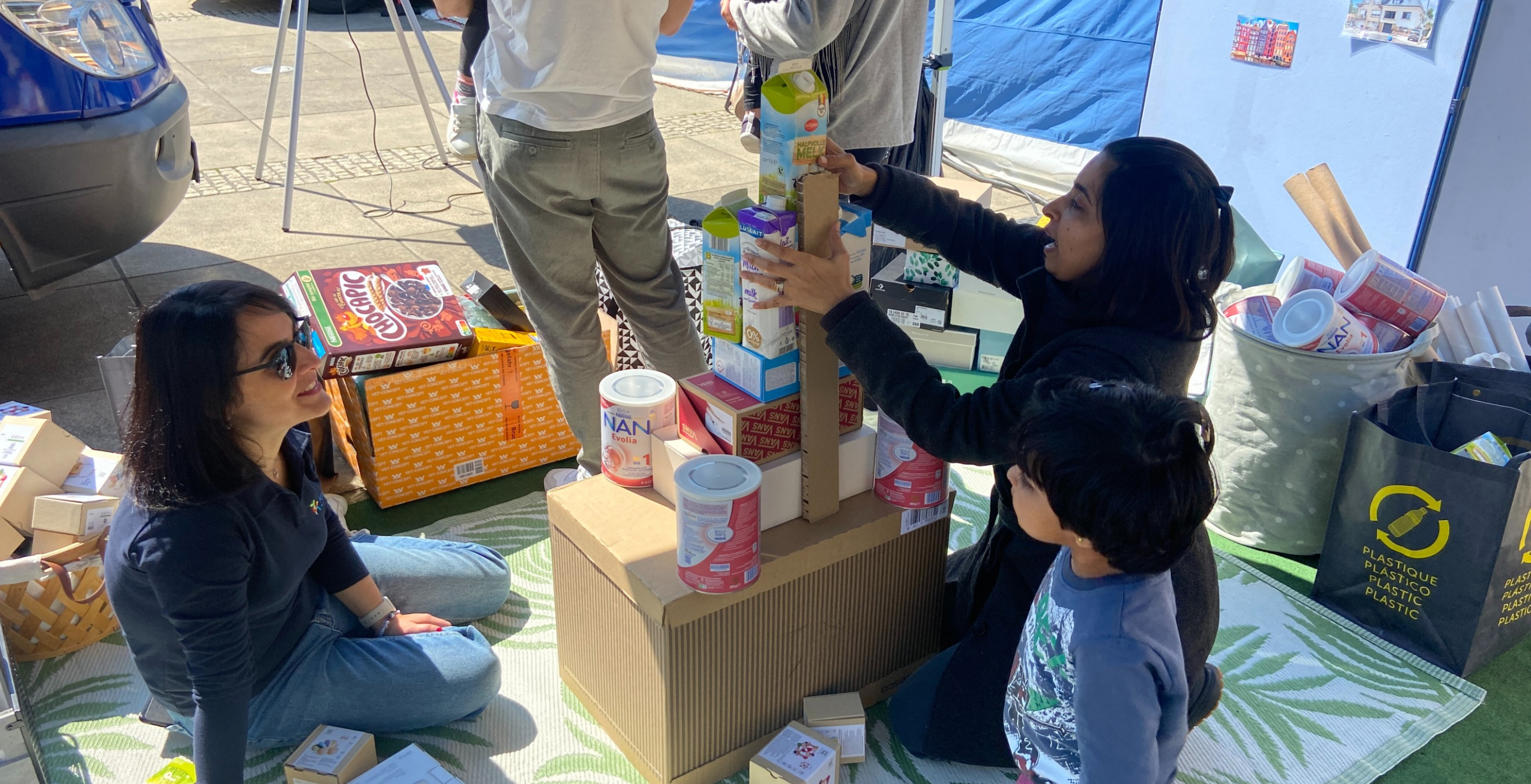 Partnering with parents was highlighted this year. Thanks to our workshops, we were able to witness beautiful relationships between children and their parents. They had fun building buildings, shacks or even shops as a family, all with recycled materials.